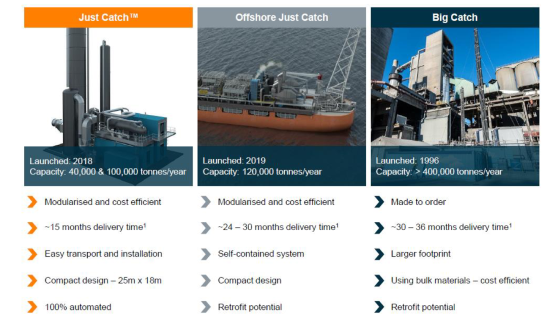 在针对大型排放源的Big Catch方案外,Aker还提供了一个低成本解决小规模排放的产品,这是一个关键的差异化因素。这个Just Catch产品,非常标准化和模块化,可以通过普通尺寸的卡车运输,这个市场还几乎是空白的。
