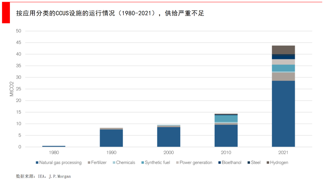 如果按照2060碳中和的时间进度,在2030年会迎来CCUS的商业化拐点,那么现在就要开始基础设施建设。根据国际能源署IEA预计,全球每年应用于CCUS基础设施的投资,未来十年要翻40倍,在2030年达到400亿美元规模。