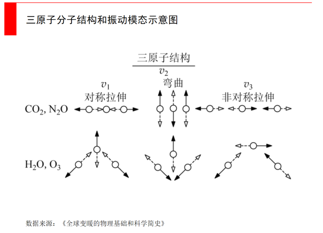 如果从化学角度理解为什么是温室气体?主要是因为CO2、N2O、O3等温室气体,它们都是三原子分子结构,能够吸收红外辐射,而双原子分子例如N2、O2等,不吸收红外辐射。