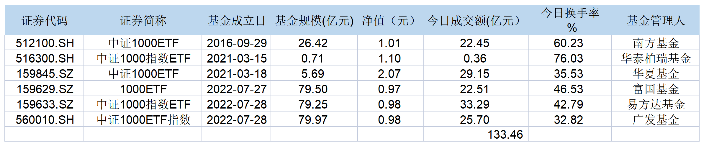 加上此前已经上市的南方、华泰柏瑞和华夏三只同类产品,至此,沪深两市共计有6只中证1000ETF。汇添富中证1000ETF将于8月8日上市。