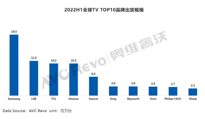 可以看到,按照奥维睿沃的数据,海信和TCL在上半年全球市场的出货数据相当,双方在争夺“全球第三”的形式相当胶着。