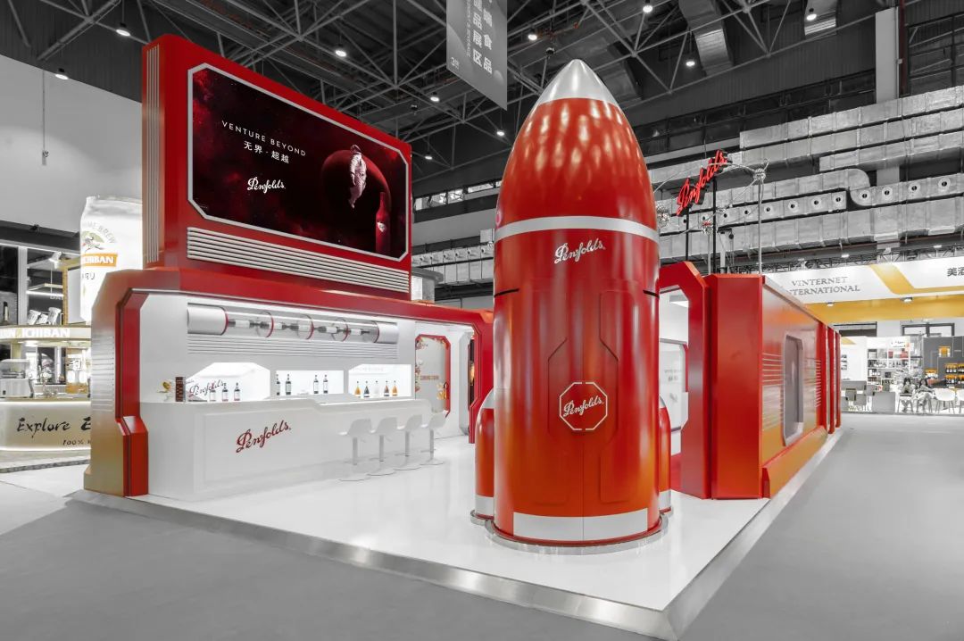 秉承「无界·超越」的品牌理念,奔富将展区打造成了一个“太空舱”,展区整体以经典夺目的奔富红和太空银为主色调,着力展现品牌超越地域和时间界限的精神与格局。