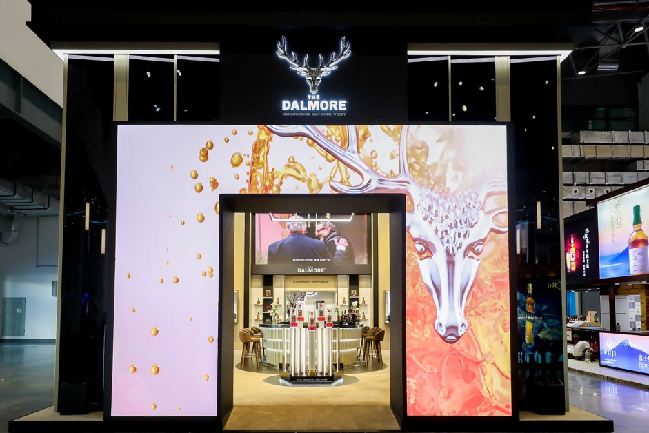 苏格兰威士忌品牌 Dalmore(大摩)携多款新品及收藏级珍品首次参展消博会。大摩展台中最为重磅的展品是鎏金时代五号典藏系列第八号威士忌,该系列在全球共发售15组,每组都有独立的编号,第八号威士忌是品牌专为中国收藏家打造的。
