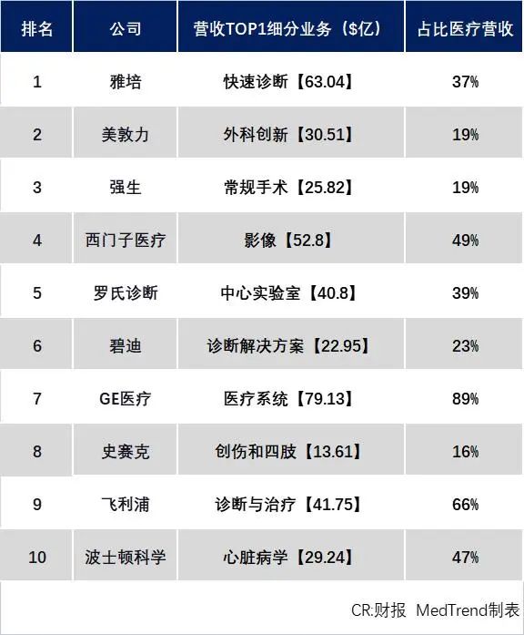 细分业务:诊断、设备、耗材,TOP 10各有千秋