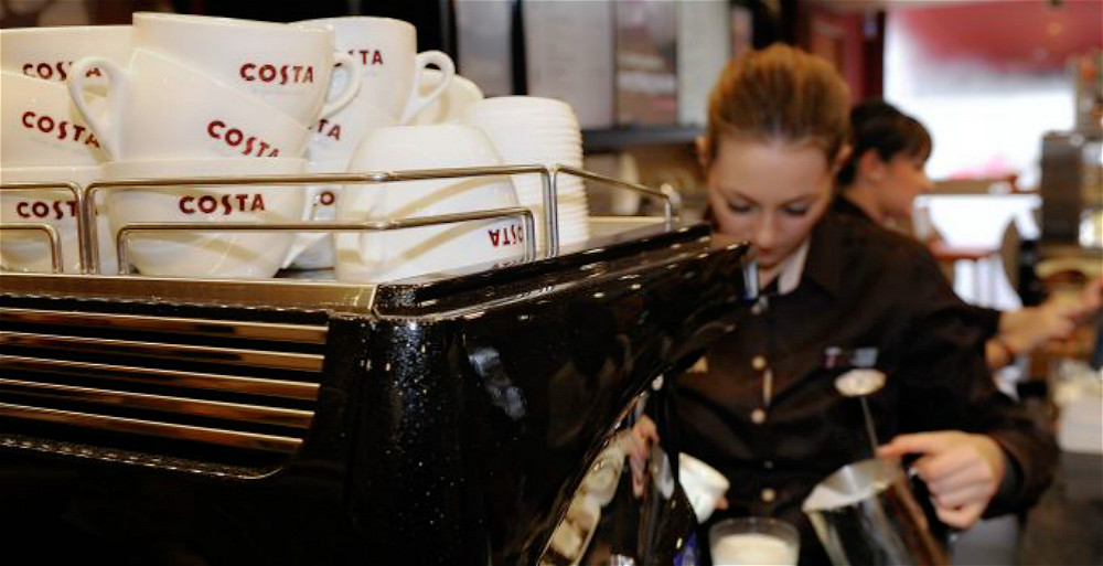 而在大西洋的另一边,它的英国劲敌Costa在员工服饰上采取了另一种激励措施,动静同样不小。两年前。它与服装供应商Incorporatewear合作,为当时欧洲2000家门店的员工定制个性化T恤与围裙。约1.6万名员工按照工种身着5种不同颜色的制服,例如收银员的制服是奶咖色,咖啡师则穿深咖啡。