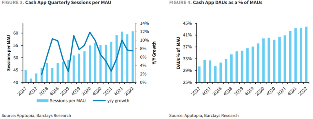 不过已有用户对Cash App的使用频次、时常、用户粘性(日活占月活比例)都在稳步提升中。