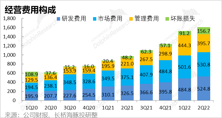 此外,公司本季的坏账损失也达到1.57亿元,较上季度环比增加了72%,可见在美股经济陷入衰退下,坏账风险也大幅提升。