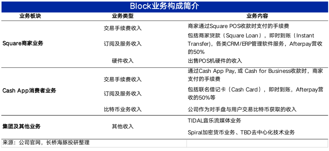 Block虽并非规模,但业务构成却相当复杂,因此不熟悉的读者可通过下表简要了解公司的业务构成,以便更好的理解Block的财报以及我们下文的分析。