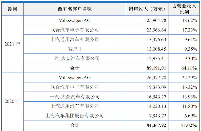 对于2020年收入的下滑,公司表示一方面由于新冠疫情爆发的影响,下游整车厂商存在一定期间的停工停产。另一方面,或许也离不开对于前五大客户的依赖问题。