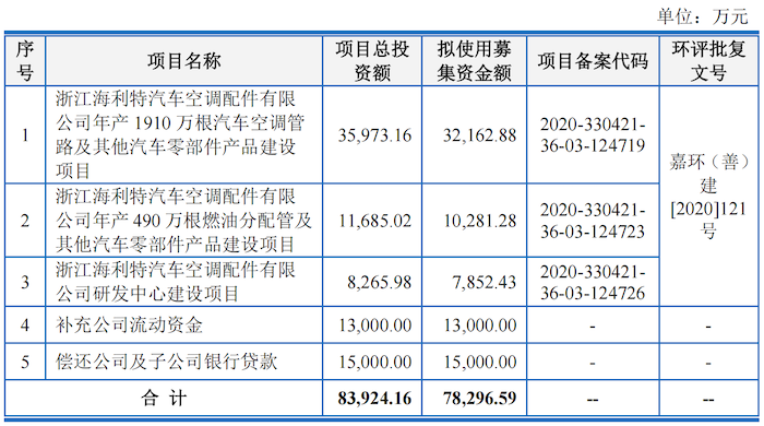 本次闯关主板,上海汽配此轮计划募集资金7.83亿元,仍主要集中于空调管路和燃油分配管路建设项目。