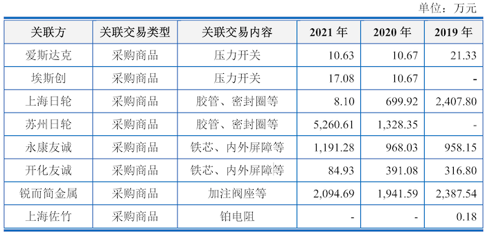 不仅如此,公司2019年至2021年发生经常性关联采购频繁,金额分别为6091.80万元、5350.31万元、8667.32万元。