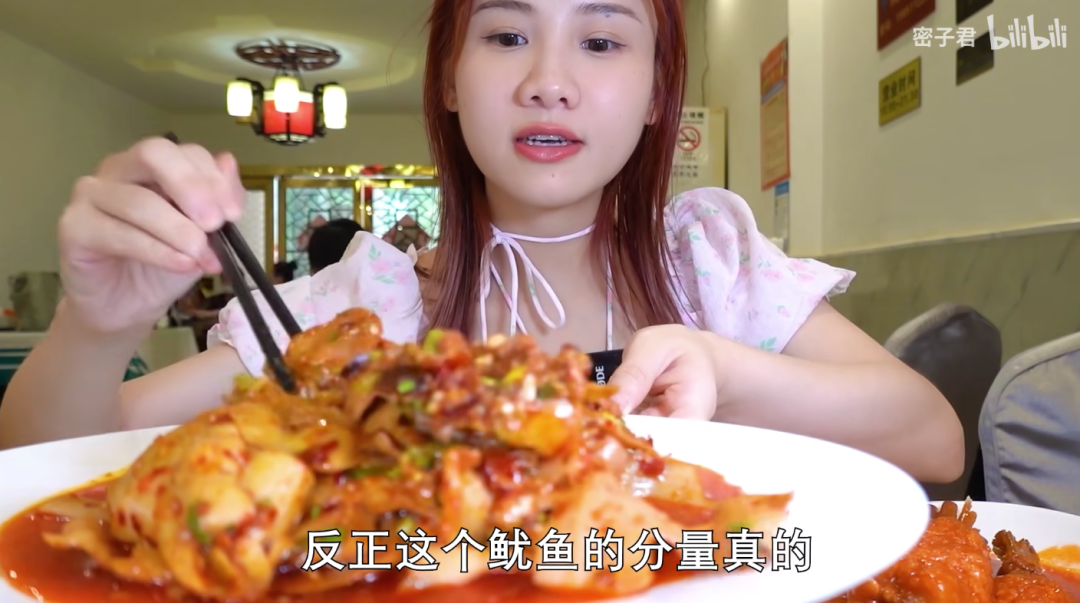 ▲ 曾以“大胃王”闻名的密子君,开始侧重探店打卡。图 / 视频截图