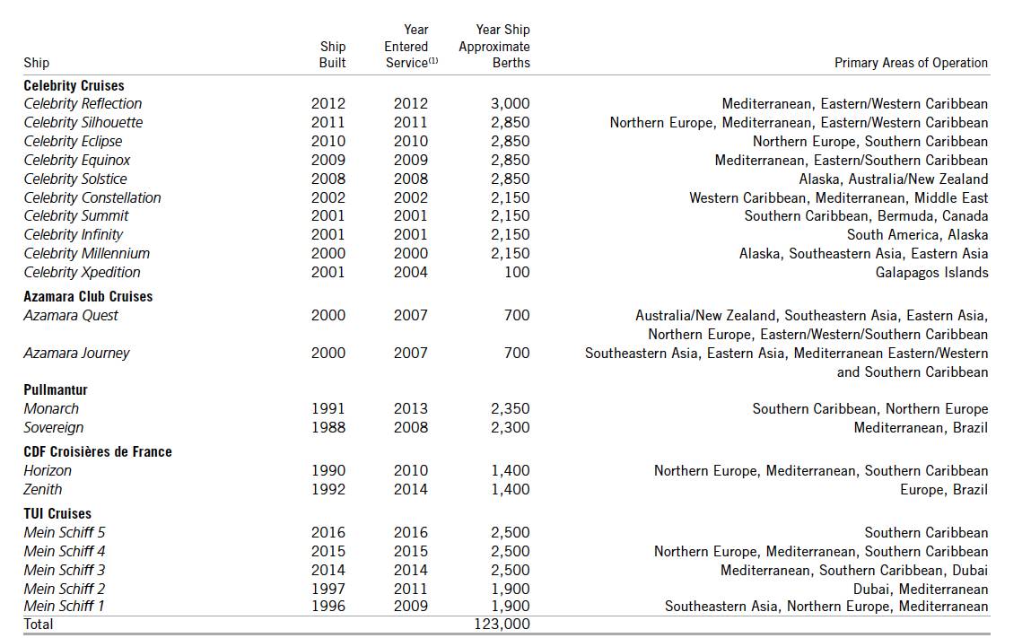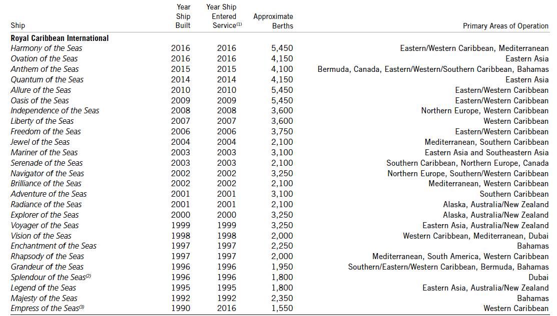 根据2015年财报显示,RCL和旗下的六大品牌一共控制着110,900个客铺位,在全世界有490个终点,遍布7大洲。