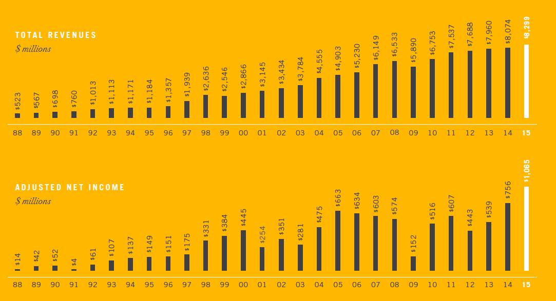 RCL的历史运营数据相当强劲,随着邮轮开始走入普通中产阶级的生活以来,RCL一路走来几乎每年营业额都保持了增长