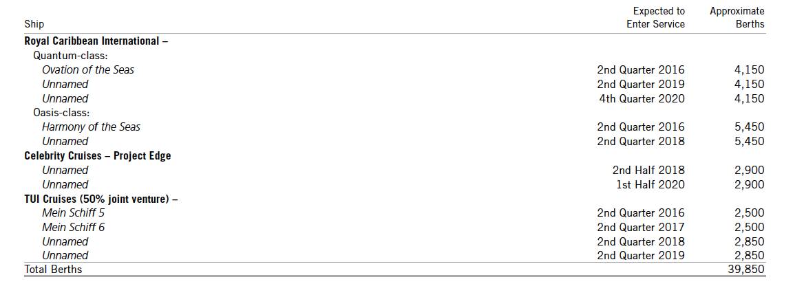 到2015年截止,RCL有28%的游客来自于欧洲,2011年以来,该地区的游客增长平均每年为1%。