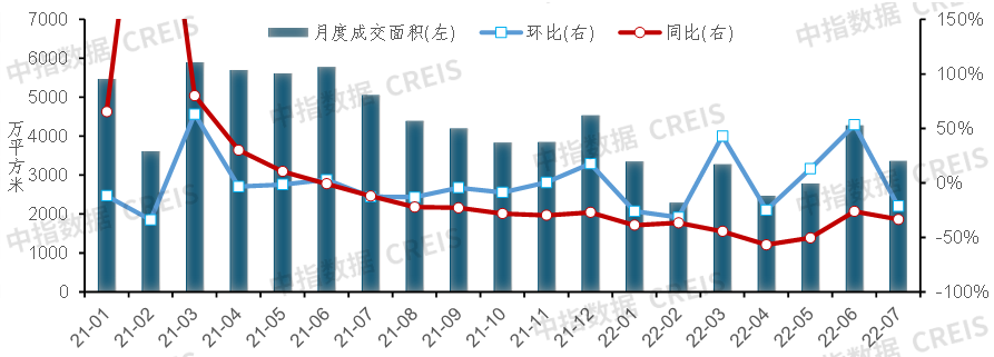 图:2021.1-2022.7百城商品住宅月度成交面积及其同比环比