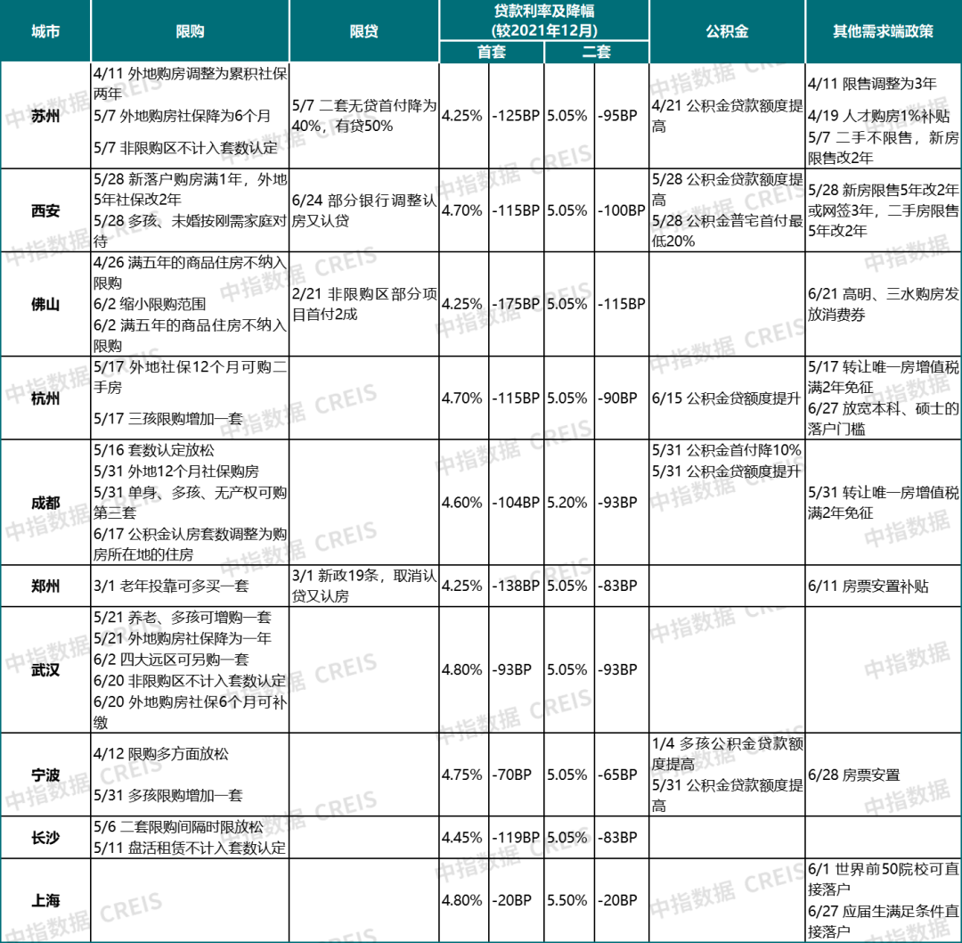 表:部分典型城市2022年以来房地产调控政策(截至7月31日)