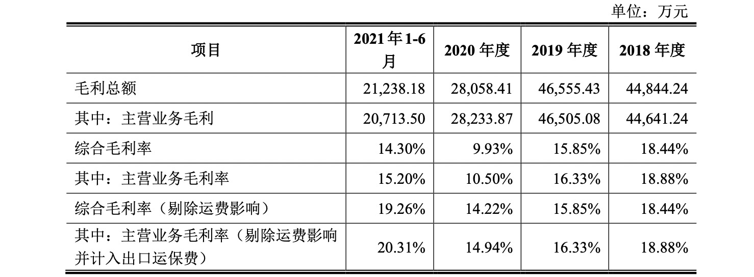 2018-2020年永顺泰的主营业务毛利率从18.88%降至14.94%。营收增长较为缓慢,且增收不增利,归母净利润连续两年下滑,2019年、2020年分别同比下滑10.66%、5.90%。