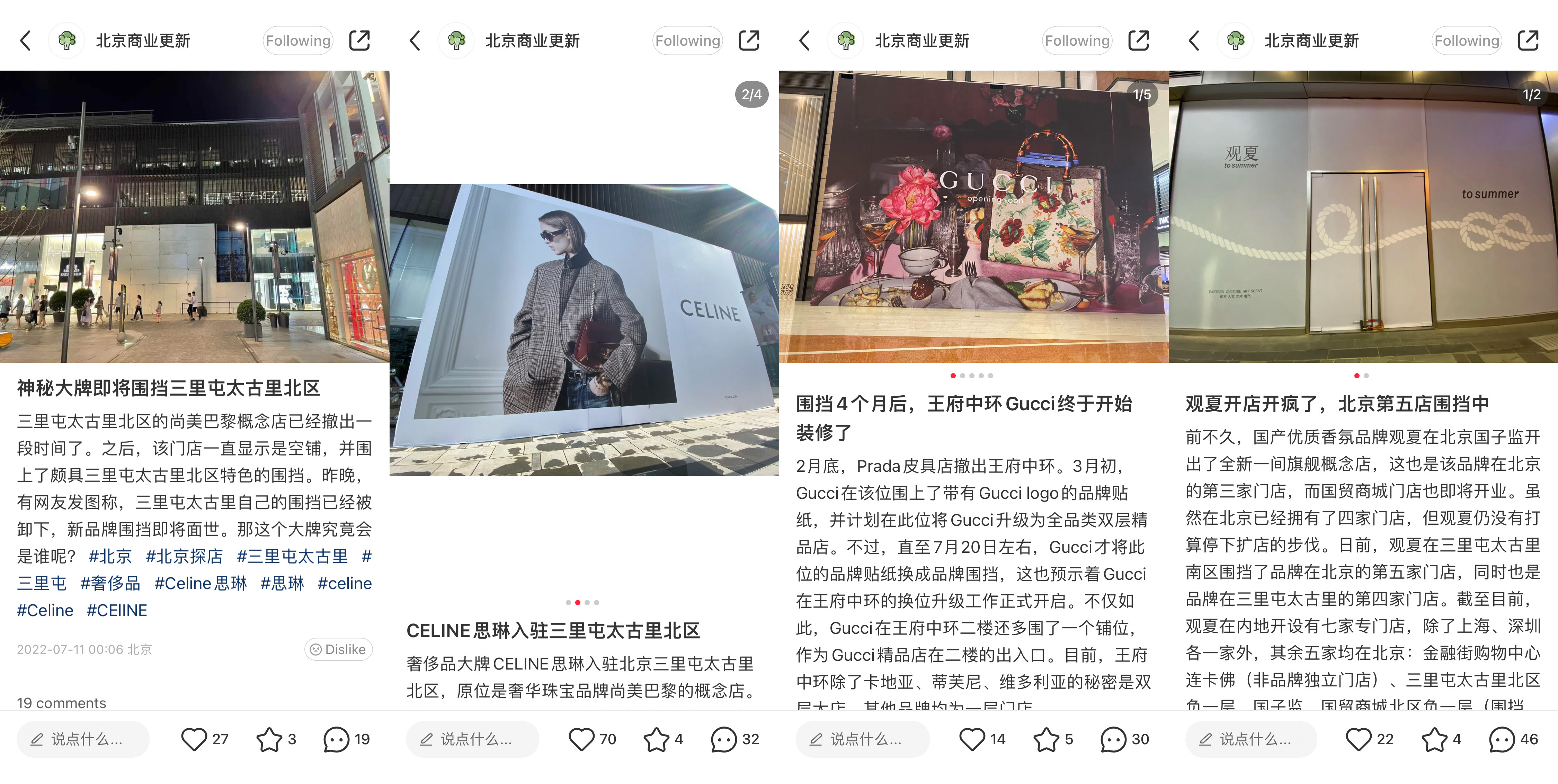 但这可能也是这个群体活力的来源,他们似乎永远精力充沛地对城市商业动态进行更新和讨论。近期疫情缓和后,许多品牌开始推进被延迟的扩张计划。而到正式开店时,这些追围挡对人又有的忙碌了。