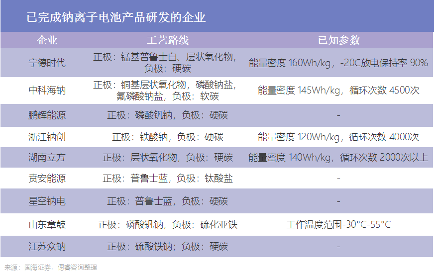 在产业化方面,目前大部分企业还处于小规模试产阶段,如宁德时代、彭辉能源、立方新能源等已成功研发产品的企业都还未形成用于投产的完整产业链。