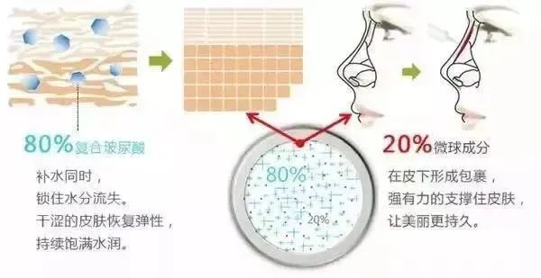 据相关资料显示,宝尼达是国内首款含PVA微球的透明质酸钠-羟丙基甲基纤维素凝胶,成分为80%复合透明质酸钠+20%PVA微球,用于皮肤真皮深层及皮下浅层之间的注射填充。作为一种长效类骨性填充材料,当玻尿酸被人体逐渐吸收后,而其所含的PVA微球会保留在原位,不断刺激皮肤内产生新的胶原蛋白,维持皮下胶原蛋白动态平衡,使填充效果能长期维持。