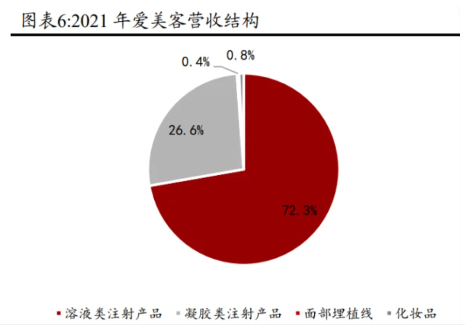 目前,爱美客旗下产品中,溶液类注射产品是其重要收入来源,收入占比由2018年的25.1%一路飙升至2021年的72.3%。