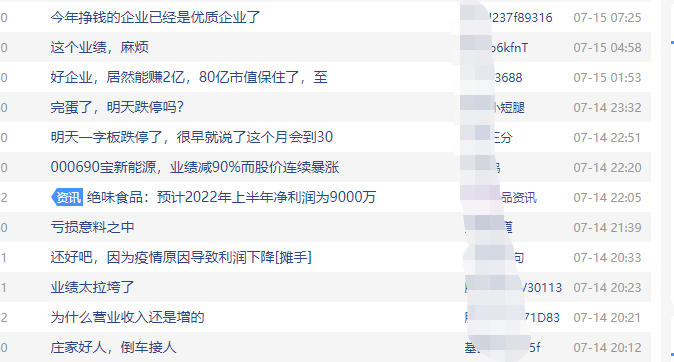 近期,绝味食品发布了2022上半年的业绩预告。公司净利润区间为9000万元—1.1亿元,同比下降78.08%—82.07%。而周黑鸭预计上半年净利润在1000万元—2000万元之间,同比下降95%。