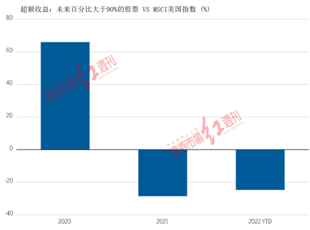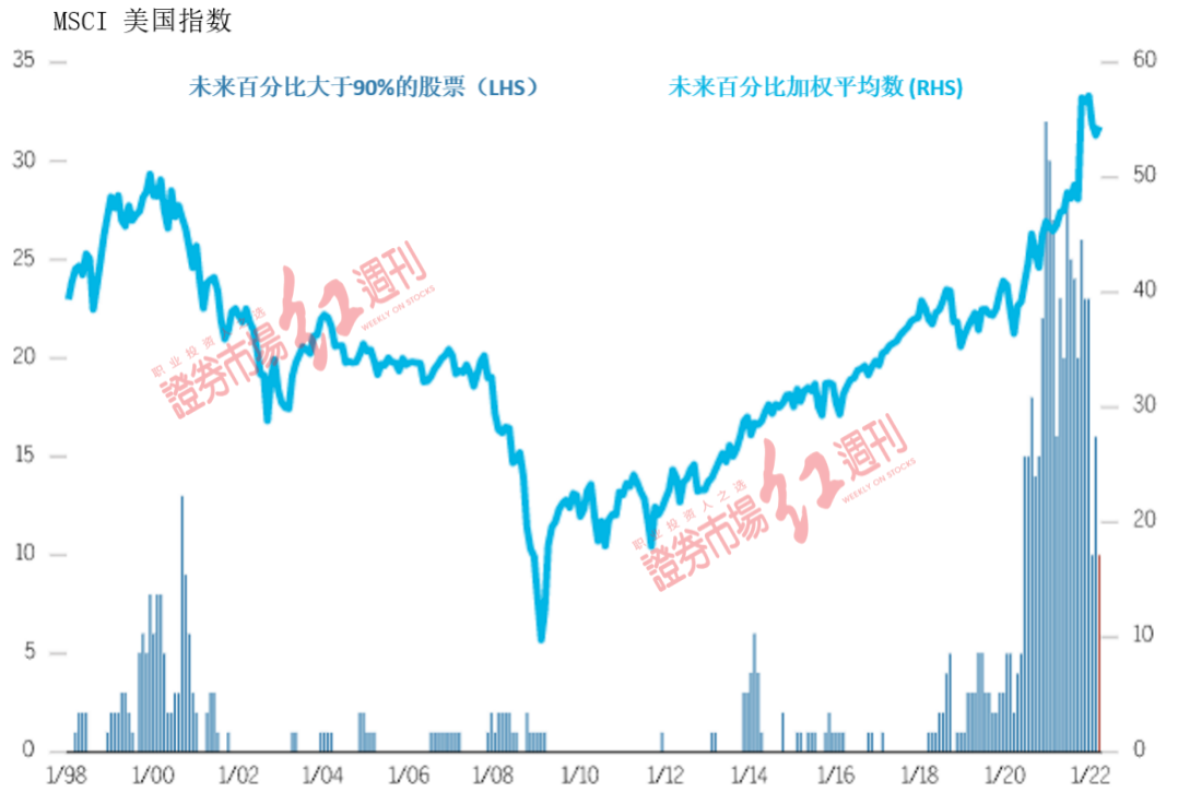 如图2(柱形图)所示,近年来,未来百分比超过90%的美股数量已经超过互联网泡沫时期的水平(我们在美国以外的全球市场也发现类似的结果)。尽管投机水平在2022年开始恢复正常,但仍高于历史平均水平,我们认为还可能会继续上升。