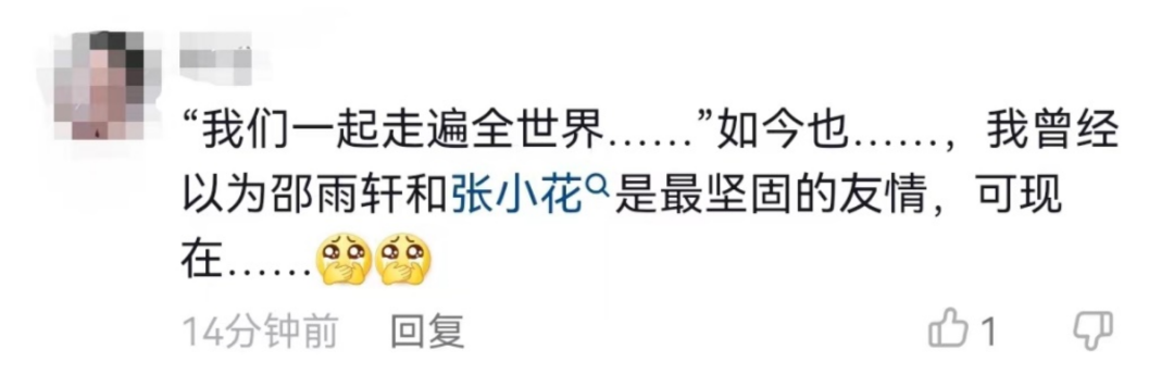 也有粉丝开始回忆邵雨轩和张小花从前相处的点滴日常,对“疯产姐妹”曾经看似坚不可摧的友情感到惋惜。