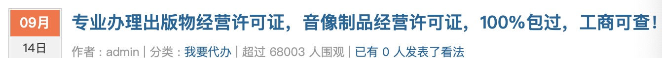 然而网络上却有不少“出版物经营许可证代办 审核包通过”的企业信息,并留下了手机号、微信号,人们可以方便地联络到这些代办机构。界面文化找到其中一家代办抖音售书资质的公司,对方并没有要求记者出示任何材料,也没有要求记者拥有任何资质,直接说他们可以办海南的,“公司+许可证一共五千”。