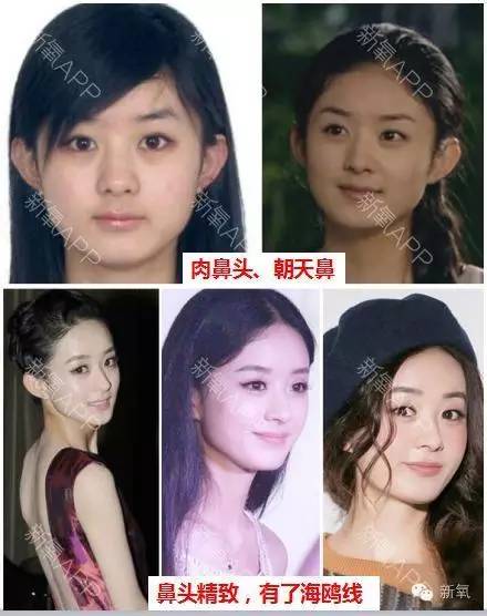 赵丽颖原来额头干瘪,鼻头也有点肉肉的,填充后面部完全符合四高三低了,鼻尖精致了整个面部立体感增强。