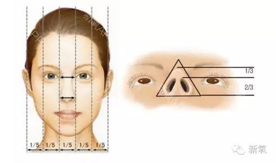 适合的鼻翼宽度应该是:鼻翼宽度不超过双眼的内眦连线。大家也可以通过自己鼻子底部的形态来判断。鼻底形状应该是一个趋近等边三角形,鼻中柱和鼻孔的比例应该是1:2。