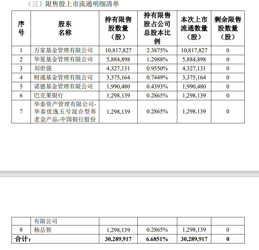 剩下三家机构/投资人巴克莱银行、华泰资产管理有限公司-华泰优逸五号混合型养老金产-中国银行股份有限公司和杨岳智均持股1,298,139股,均占比0.2865%,均亏损至少959.32万元。