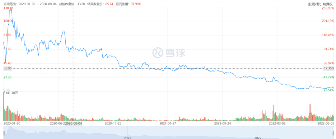 但优刻得此后的股价表现却不尽如人意,今年3月以来优刻得股价一直徘徊在20元/股左右,近几个月股价都已经下探至12.88元/股,截至2022年8月5日收盘,优刻得报收于15.72元/股,假设以这个价格离场这些机构均损失惨重。