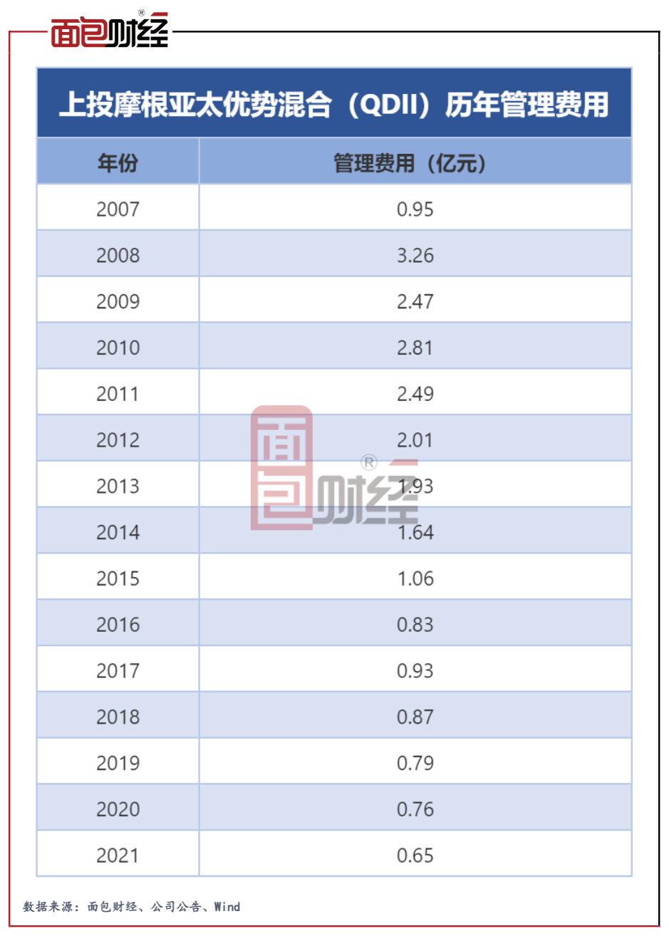 作为2007年第一批出海QDII之一,上投摩根亚太优势混合(QDII)管理费率达1.80%,。该产品的管理费率不仅在上投摩根旗下产品中最高,在整个公募QDII基金市场(初始基金口径)也位居前列。