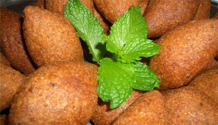 3. Kibe:同样类似于油炸丸子,但包裹的馅料以牛羊肉为主,搭配切碎的洋葱粒辅以中东香料(肉桂、肉豆蔻、骆驼肉丁香、多香果)炸制而成。最经典的口味包括牛肉洋葱、羊肉松子等。