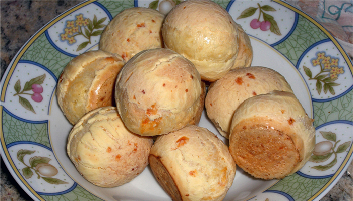 7. Pão de queijo:葡萄牙语意为“奶酪面包”,顾名思义就是通常所吃的芝士面包。但是Pão de queijo的口感並不像一般的面包,而是有Q弹感觉,有点类似麻薯或者糯米糍的感觉,当然味道是偏咸口的,巴西人通常拿它作为早餐之选。