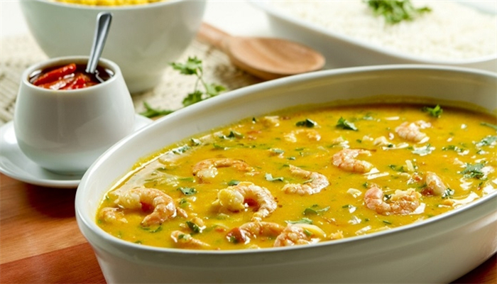 3.Bobo de camarao:巴西风味椰奶虾是巴西和非洲风味的结合,是用熬成的浓汤煮上美味的虾和椰子。此种美食有时会与米饭一起食用,有时也可作为零食单独享用。