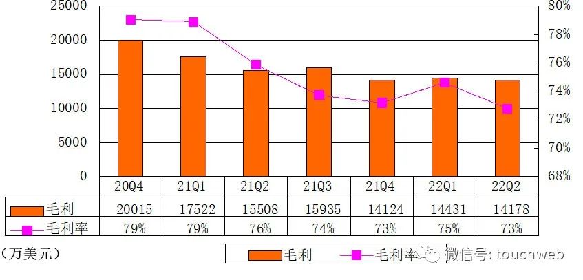 搜狐2022年第二季度毛利为1.42亿美元,毛利率为73%