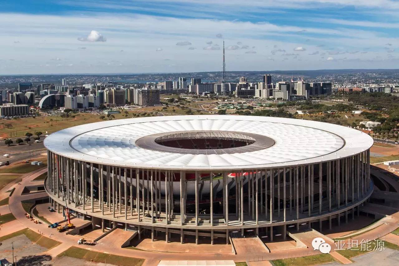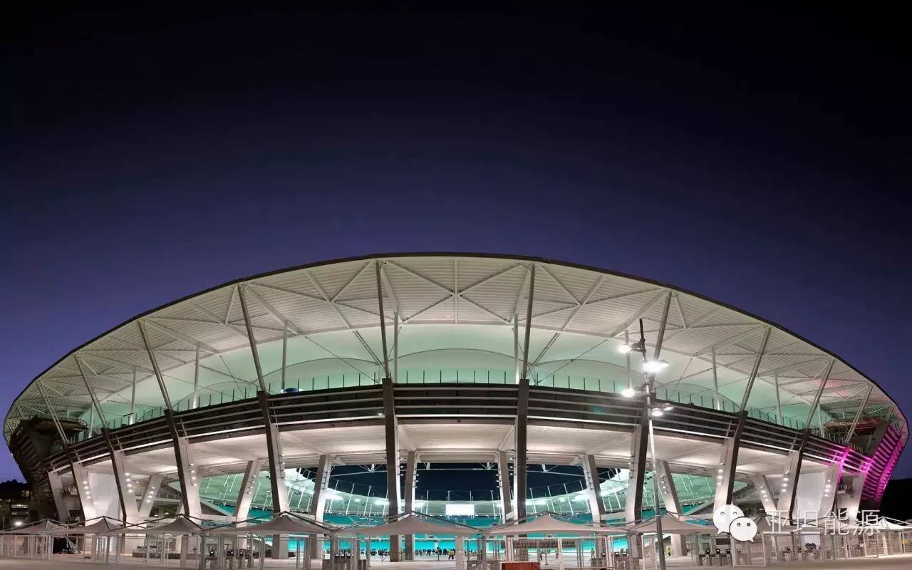 世界杯结束之后,巴西国家体育场安装了光伏系统。该设施配有约9600片太阳能电池板,总装机量为2.5兆瓦,每天可满足约2000个家庭用户的能源需求。建成后,该太阳能列阵占据体育场屋顶四分之三的面积,因此巴西国家体育场成为全球首个能源自产自足的体育馆(话说鸟巢的130千瓦是不是立马就被秒了......)。此外,该光伏系统的多余电力将供应给其它城市。