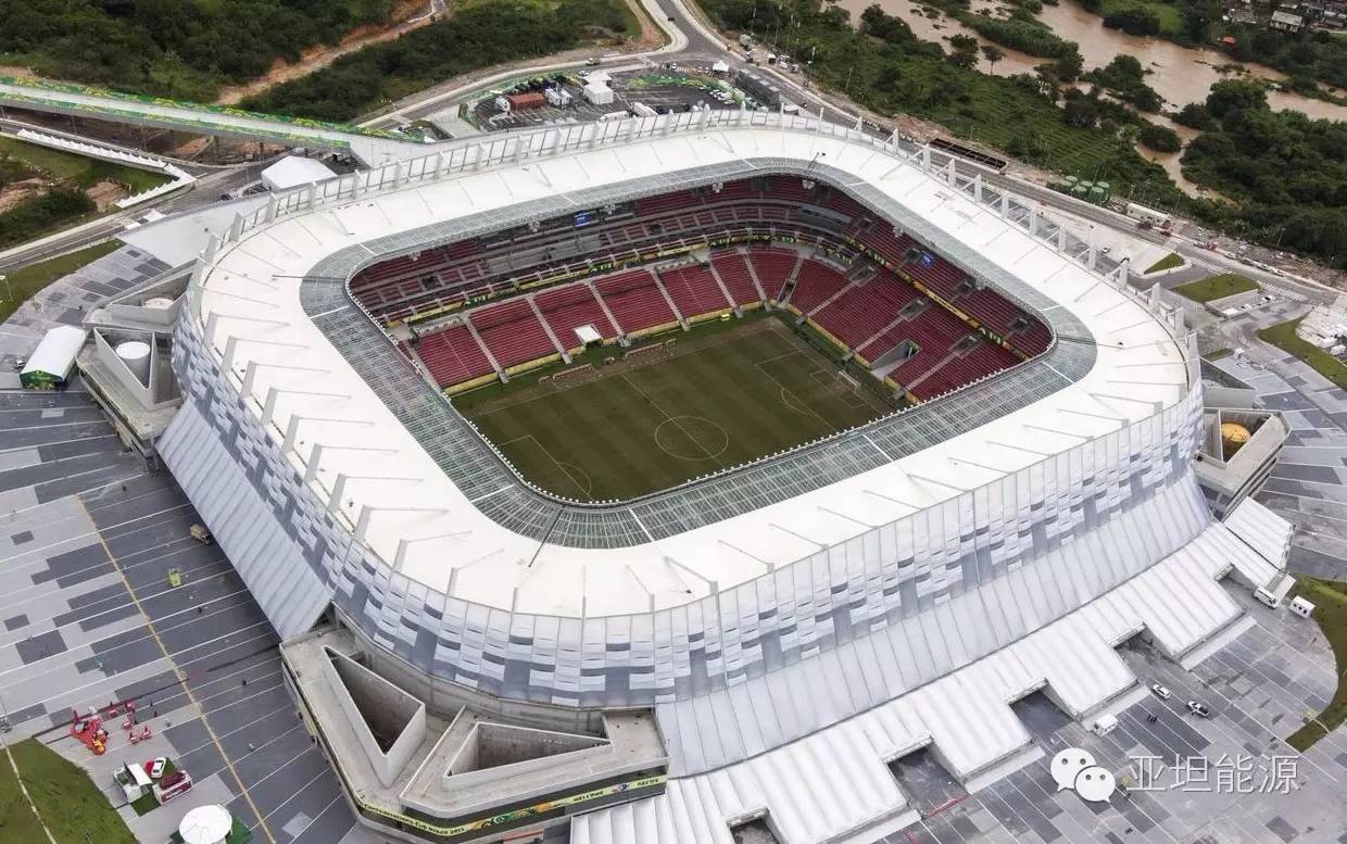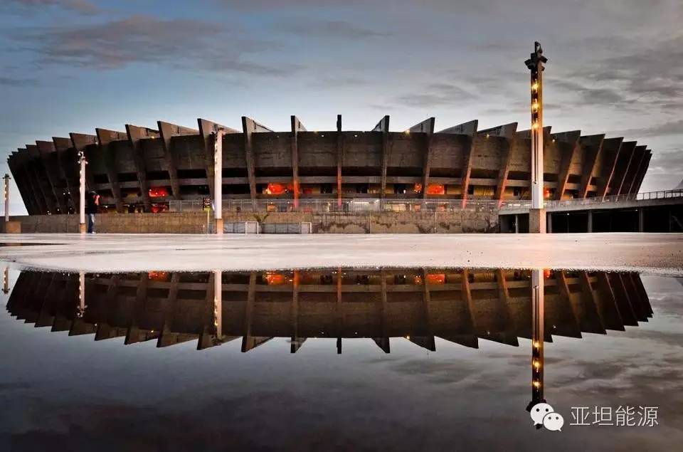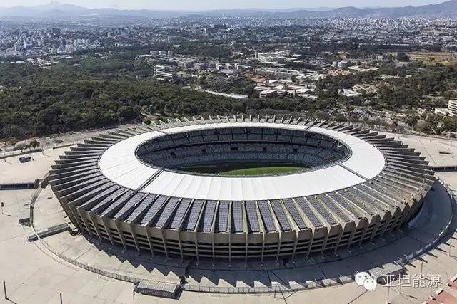其实在2014年的巴西世界杯诞生了5个光伏发电体育场,除了上面介绍的巴西国家体育场,还有东南部城市贝洛哈里桑塔(Belo Horizonte)米内罗球场的1.4兆瓦屋顶光伏发电系统。