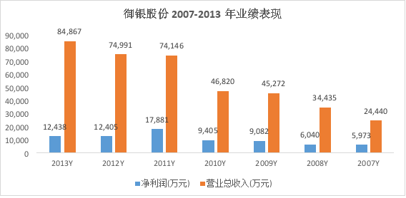 享受着资本红利的同时,在移动支付尚未普及之前,御银股份业绩也堪称表现亮眼,其营收从2007年的2.44亿元增至2013年的8.48亿元,增幅达247.5%,净利润从同期的5973万元增至1.24亿元,增幅达107.6%,在此期间可谓是增收又增利。