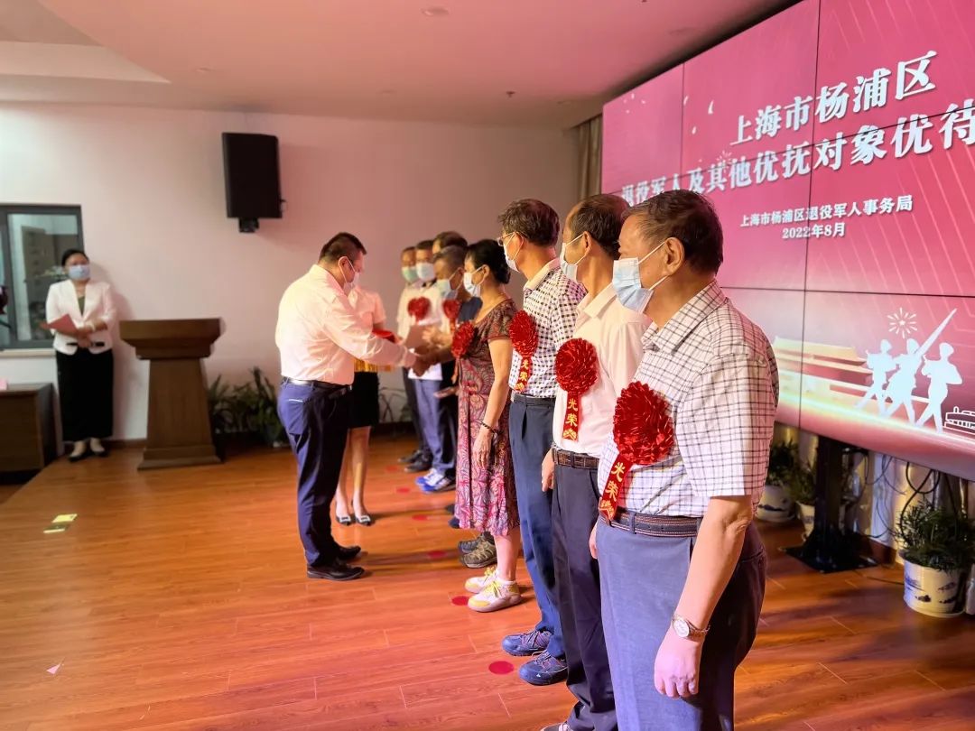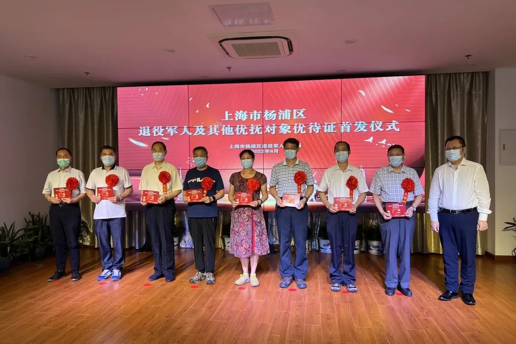 今天(8月8日),杨浦区举行优待证首批颁发仪式。这是对持证人光荣历史和贡献的肯定和彰显,体现了党和国家对退役军人曾经为国防事业作出贡献的认可。上午10时半仪式正式开始,26位退役军人和其他优抚对象代表胸前别着红花,满眼都是光荣,领证人员一一接过颁发的优待证。