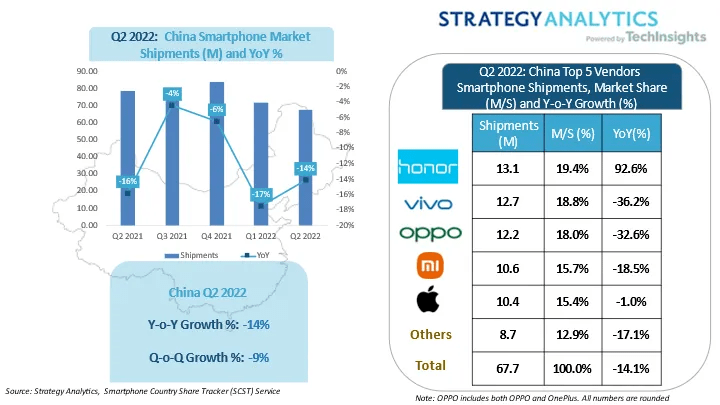 到了今年,整个智能手机市场仍不够明朗。近日,据调查机构 Canalys 发布的相关报告显示,2022 年的第二季度,全球智能手机出货量仍在下滑,甚至总体的下滑幅度也来到了9%,整个市场依旧是颓势显著的状况。