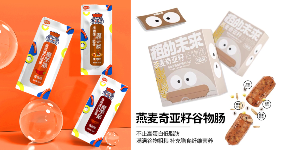 随着素食人群数量的增多以及人们对膳食营养的关注,素肠也迎来品类崛起的好时机。许多产品均以低卡、高纤为突破点,魔芋、燕麦这两种原料也因此与豆类并驾齐驱,成为被高频使用的肠类食品原料。植得未来的谷物肠在添加燕麦的基础上加入奇亚籽,改善口感的同时优化营养结构,并延伸出类似于午餐肉的方形产品,适合烤制食用。