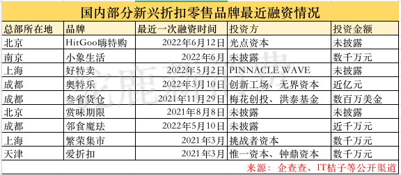 不过,进入到2022年后,由于疫情在北京、上海、深圳等一线城市反复,导致线下客流量下降,使得以线下门店为主要获客渠道的新兴折扣零售玩家高度承压。与此同时,受到国内外市场大环境的影响,投资机构出手也更加谨慎,这也使得新兴折扣零售赛道迎来了行业第一次大洗牌。