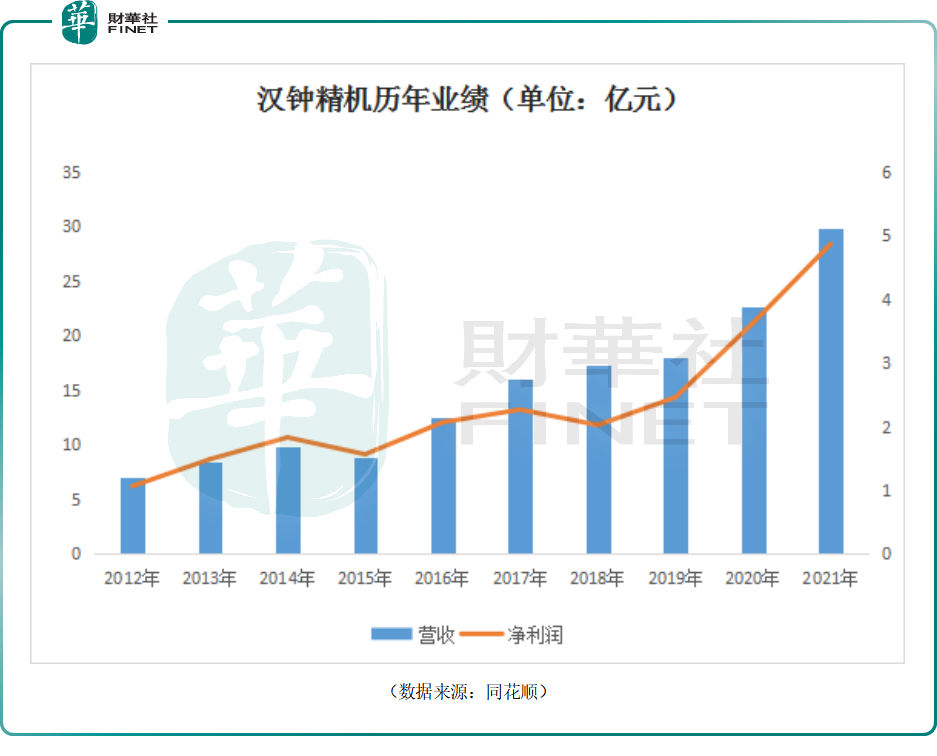 在压缩机及真空产品业务双轮驱动之下,2021年汉钟精机实现营收同比增长31.2%至29.81亿元,5年复合增长率25.07%;实现归母净利润同比增长34.11%至4.87亿元,5年复合增长率24.02%。