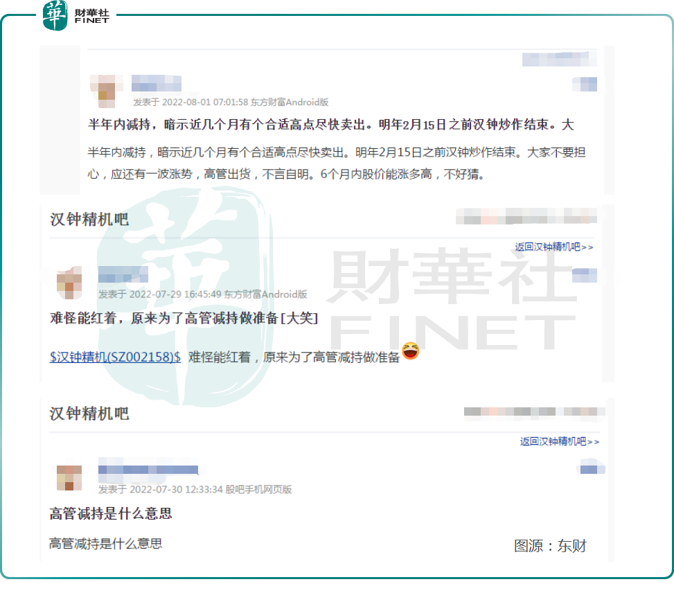 减持公告一出,不少投资者在股吧留意表示看不懂;也有投资者猜测高管出货,应该留意冲高回落的投资风险。