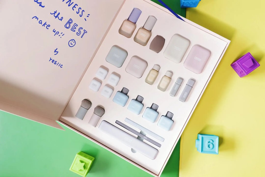「YES!IC」成立于2018年,是玛丽黛佳母公司创元集团推出的年轻化彩妆品牌,主张极简设计与中国原创。目前已有一百四十多个SKU,包括眼影、粉底液、口红等。