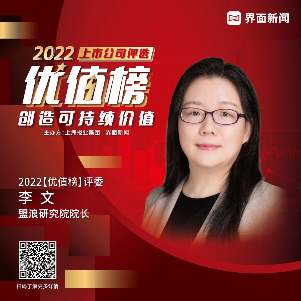 本次评选终审评委会特邀盟浪研究院院长李文女士莅临,加入本次2022【优值榜】评选的终审评委会,投出神圣的一票!
